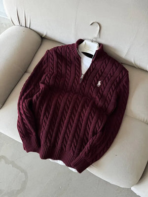 Polo Ralphlauren Yarım Zip Triko Bordo